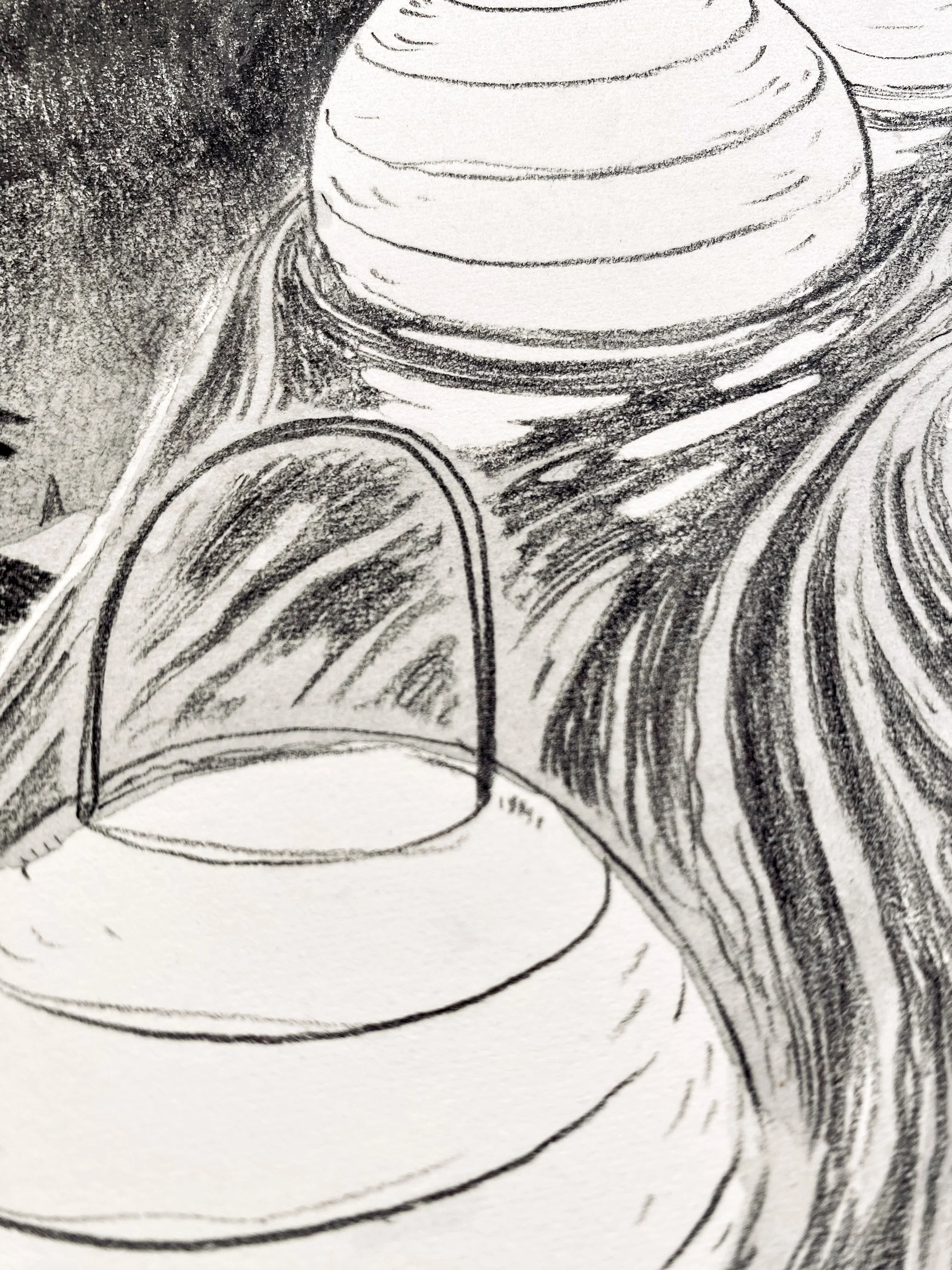 Drawn in pencil on Arches watercolor archival paper. Sprayed with a matte fixative to preserve the artwork.